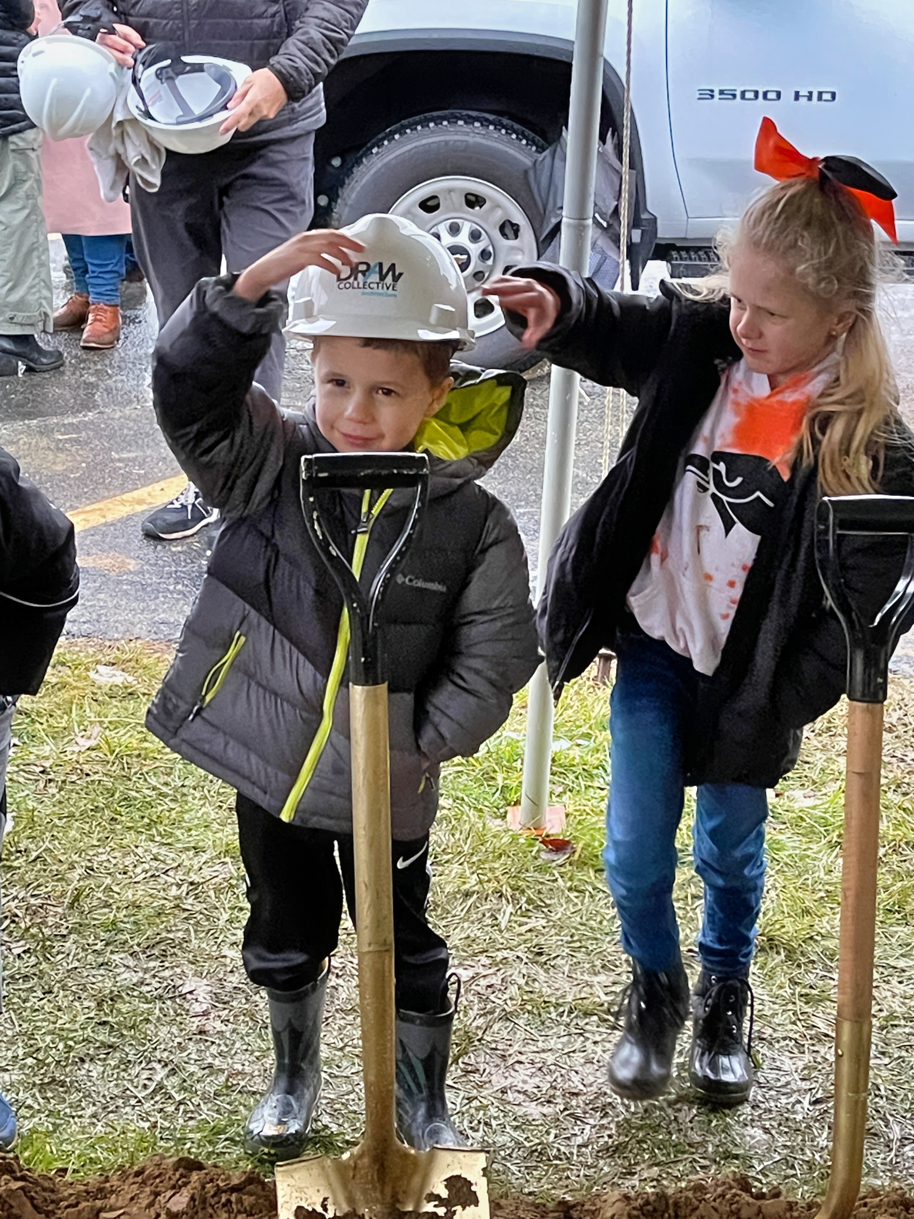 Following this, various groups, equipped with hardhats and shovels, participated in a series of photos, marking the initial step towards realizing the vision of a new school.