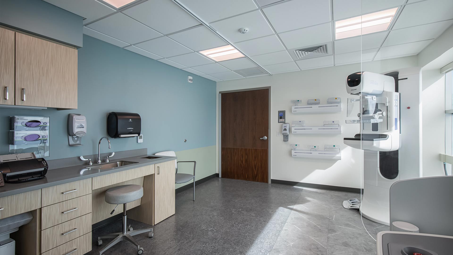 DRAW’s design for the project included a hospital-based diagnostic suite with lab services, X-ray, Mammography, DXA, echocardiogram, and ultrasound rooms, as well as a hospital-based outpatient physical therapy, all designed in compliance with the 2018 edition of Guidelines for Design and Construction of Outpatient Facilities.