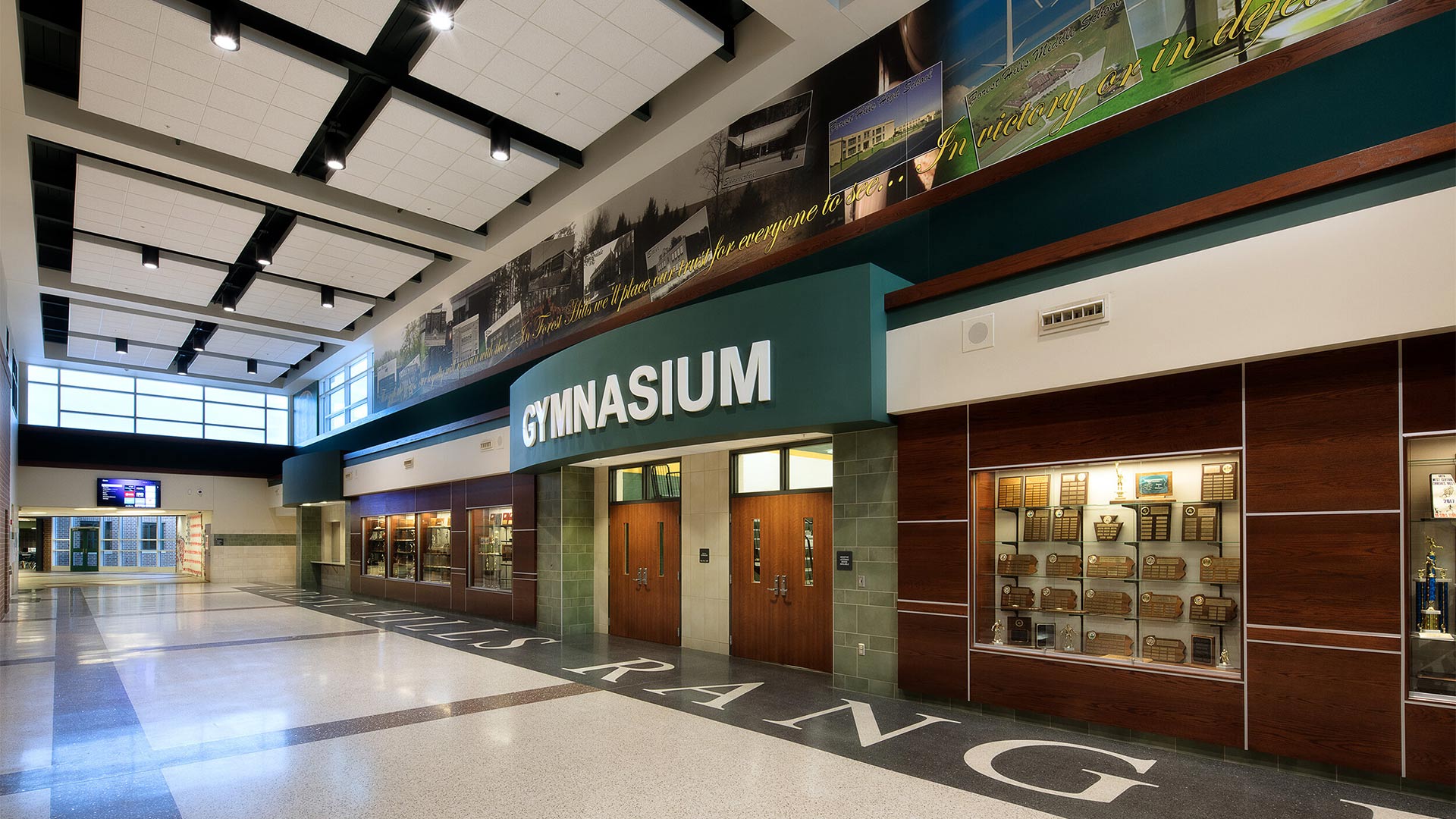 The school’s core arts, athletics and cafeteria facilities are organized on the ground level along with a media center, tech-ed classrooms and a state-of-the-art LGI. These facilities support both the high school and junior high school programs. The design of the corridors and common areas uses colors, murals, artifacts and graphics to salute the District’s and the region’s past school buildings and industry.