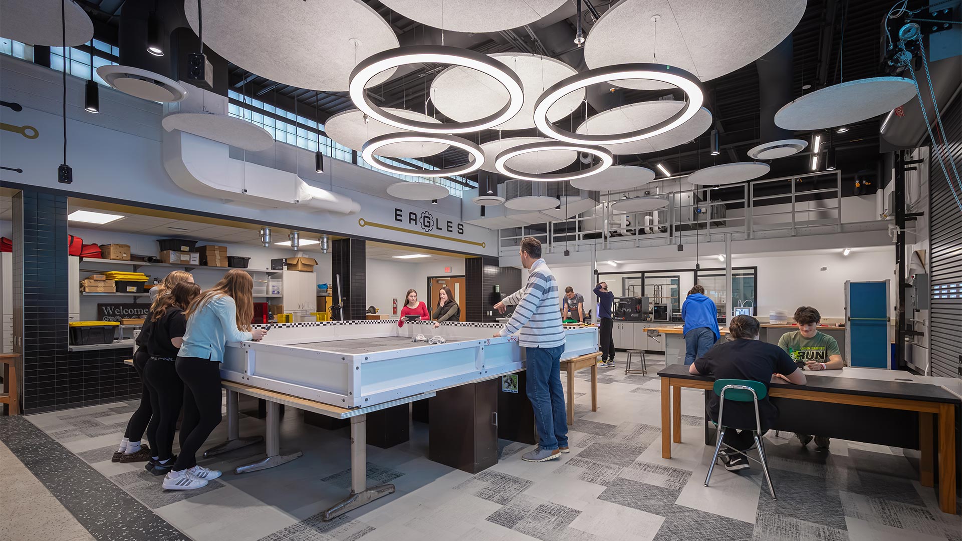 The District and DRAW Collective are collaborating on the renovations of the current high school to reimagine their arts, fitness, science, and learning spaces. Extensive infrastructure improvements, along with maximizing efficiency among the school’s STEAM spaces, took high priority during the design and planning stage. Aligning with the District’s mission to provide students with ample opportunities, DRAW Collective designed an upgraded ceramics room, a dedicated music area, LGI, and a reimagined technical education suite. These spaces are integral for the Grove City High School student experience, education, and preparation for post-graduation.