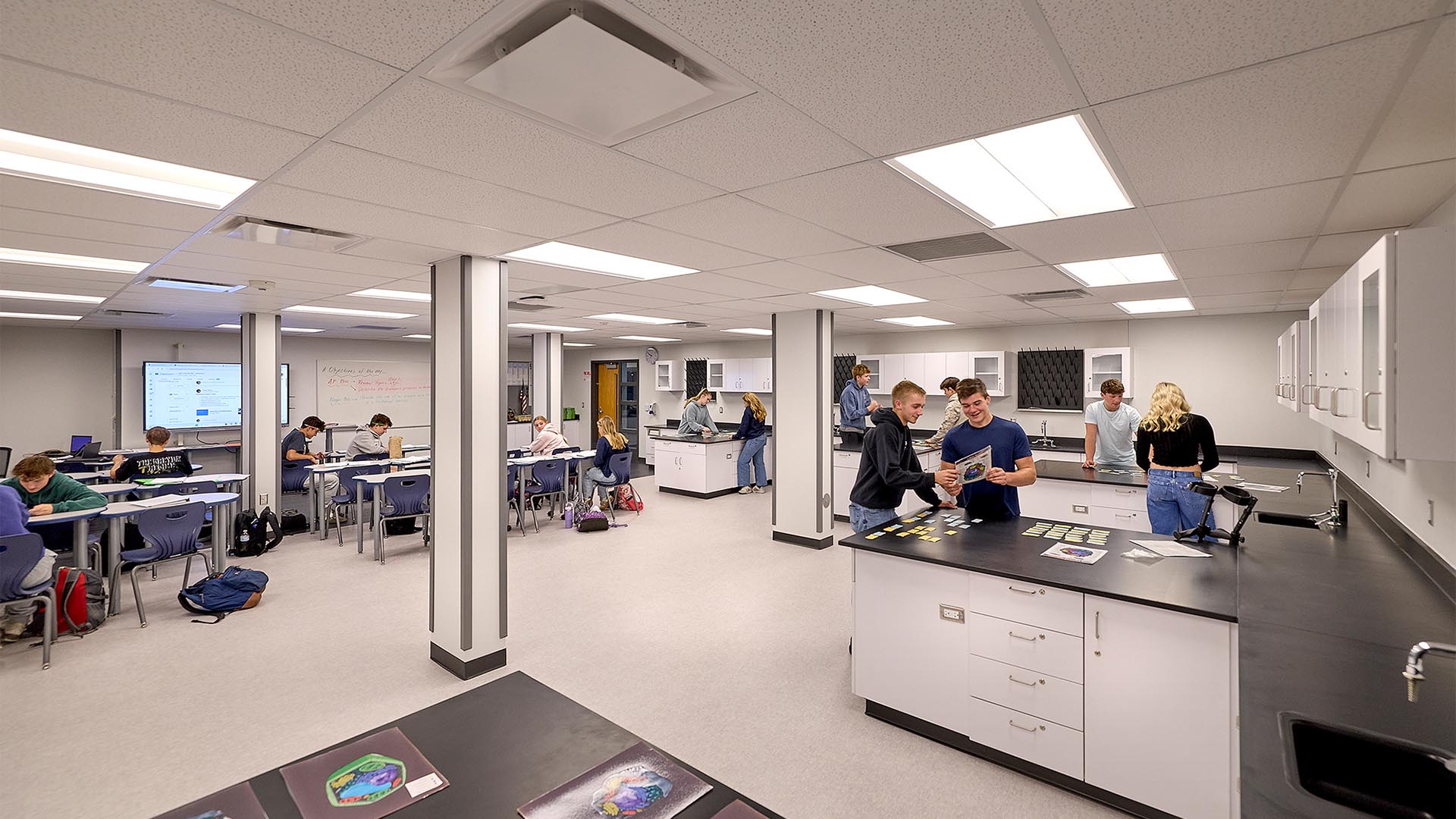 At the same time, the team significantly improved the science classrooms and labs by fully reconfiguring and enlarging them. The new design increases instructional space and provides much-needed storage.
