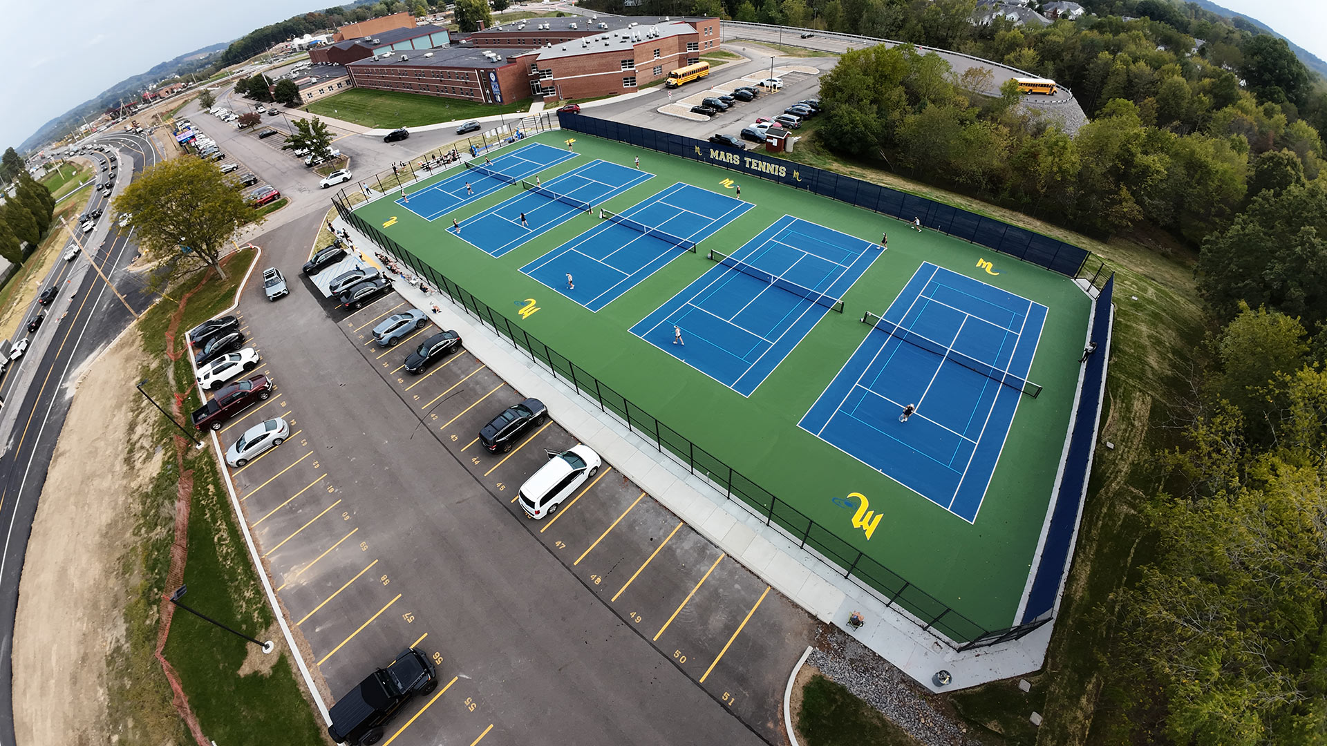Mars Area School District has invested in the improvement of its athletic facilities with the construction of five new tennis courts at Mars Area High School. The project includes the installation of a multi-court complex designed to support both physical education programs and interscholastic athletics.