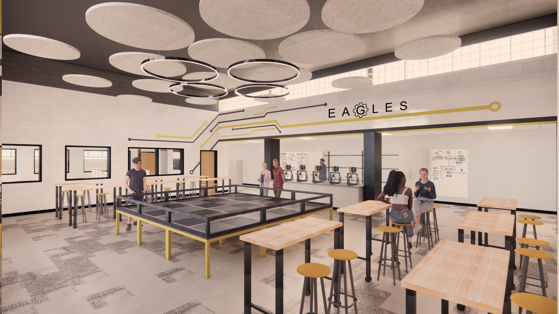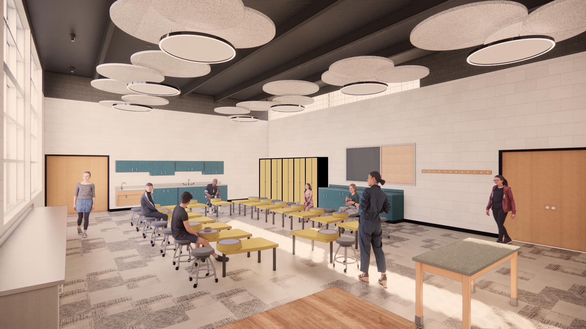 The District and DRAW Collective are collaborating on the renovations of the current high school to reimagine their arts, fitness, science, and learning spaces. Extensive infrastructure improvements, along with maximizing efficiency among the school’s STEAM spaces, took high priority during the design and planning stage. Aligning with the District’s mission to provide students with ample opportunities, DRAW Collective designed an upgraded ceramics room, a dedicated music area, LGI, and a reimagined technical education suite. These spaces are integral for the Grove City High School student experience, education, and preparation for post-graduation.