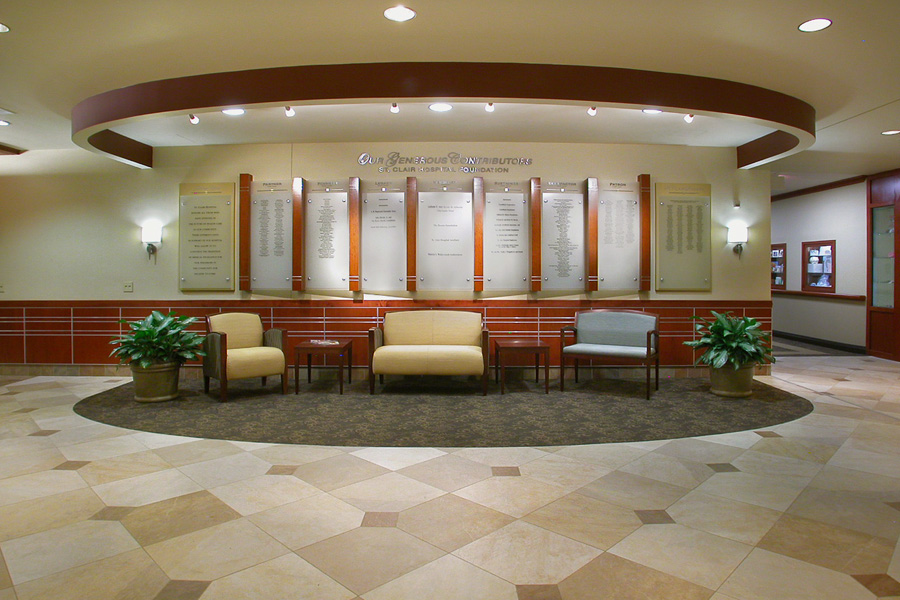 St. Clair Hospital established the goal of creating warm, inviting lobbies that might be more akin to the hospitality industry than a typical hospital.