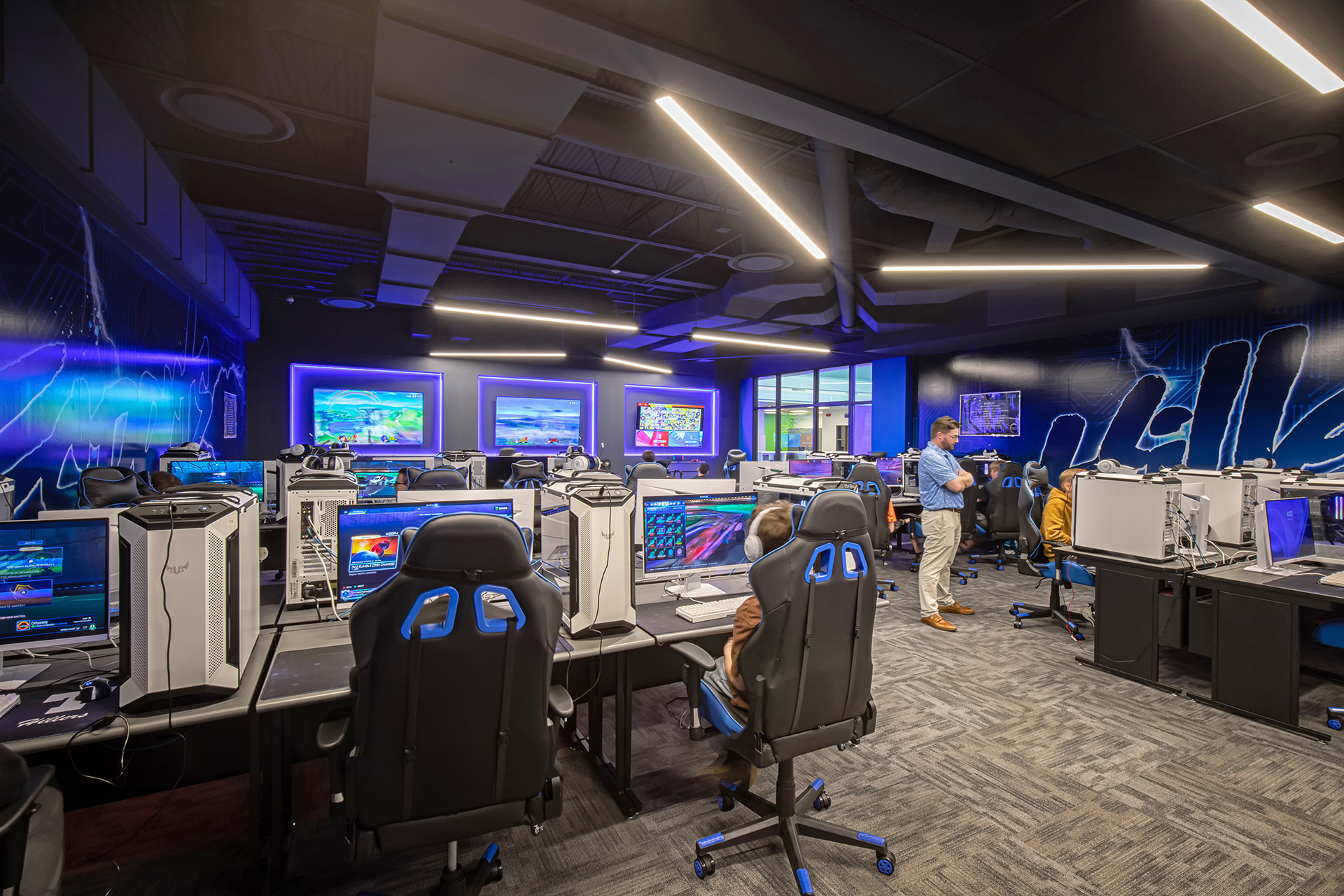 The Trinity Area School District’s new eSports Classroom allows the Trinity Middle School students to have their own arena with gaming PCs, LED lights, ergonomic chairs and large TV screens.
