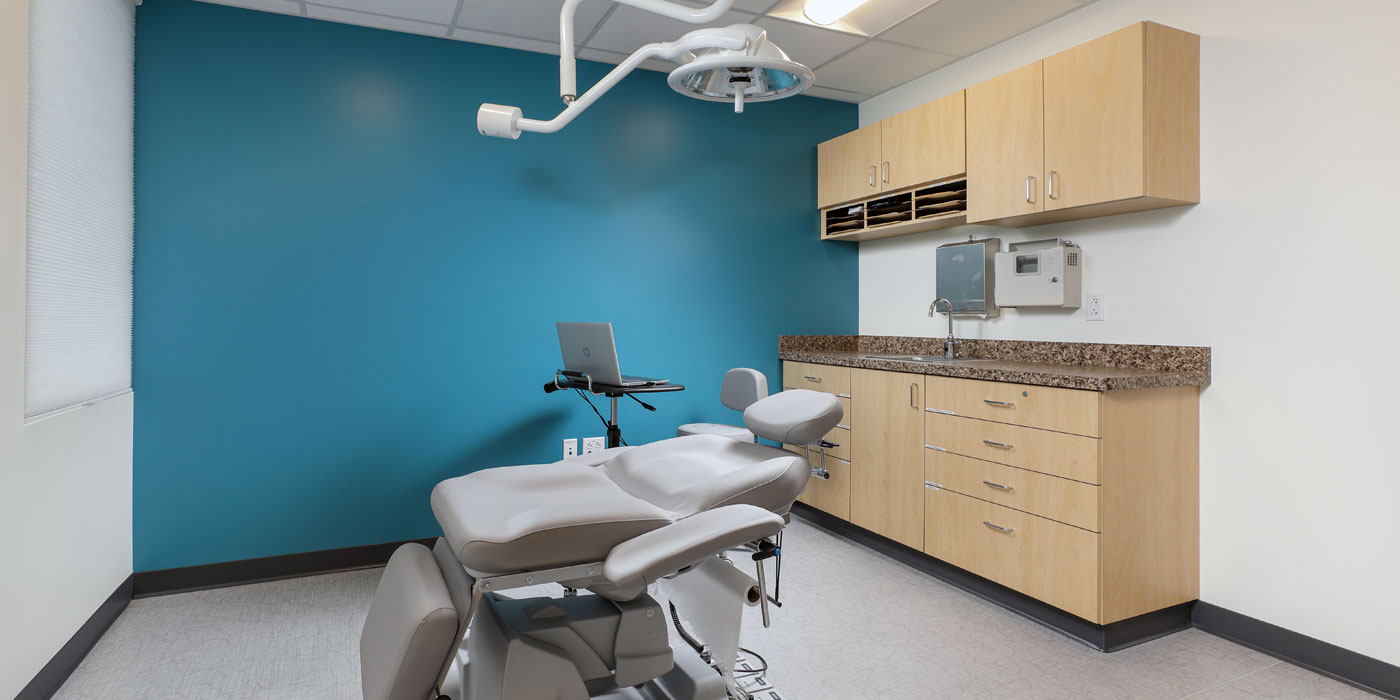 The practice sought to improve staff efficiency and provide a better patient and caregiver experience. Enlarged exam rooms and an improved patient check-in/check-out created a smooth process for patients and staff. Each space received fresh, upgraded finishes and new casework to meet their goals.