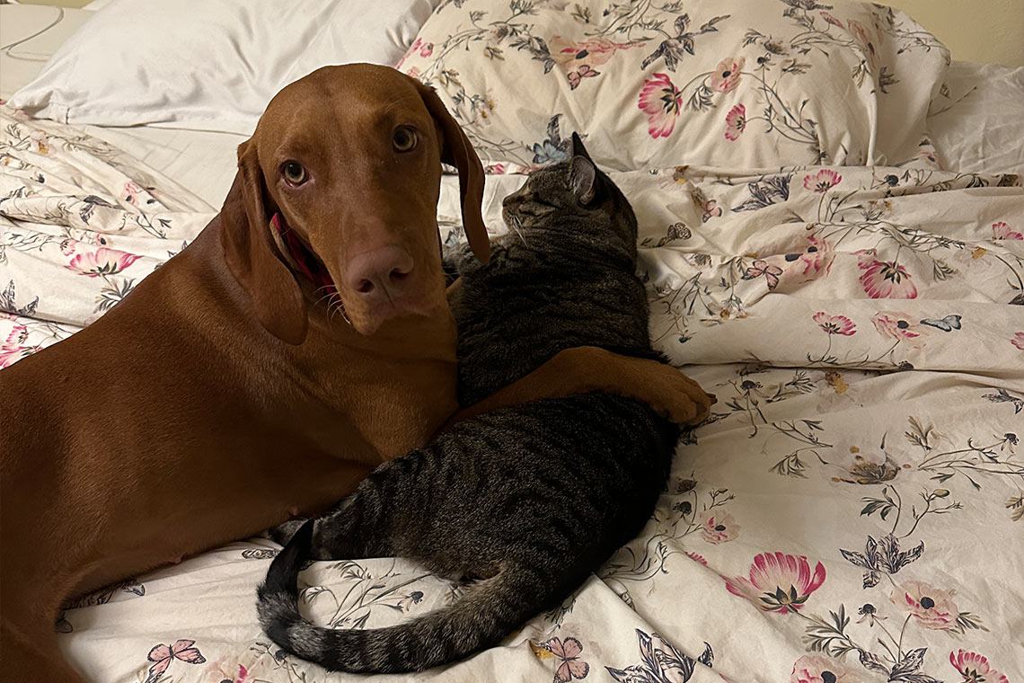 Hi, my name is Faye. I am a 3-year-old Vizsla with A LOT of energy! Me and my sister love hanging out. Sometimes I love it more than she does. My dad, Dan, brings us to work with him and we get to keep everyone company.