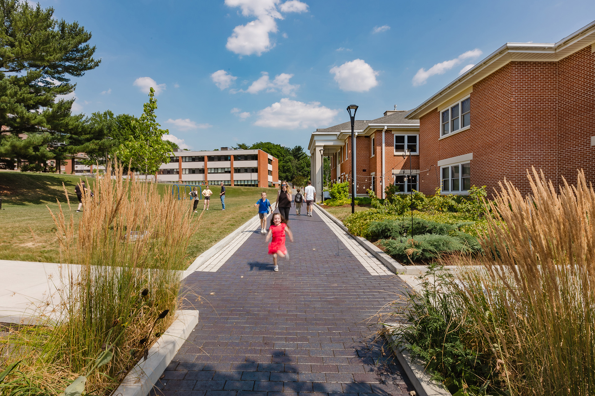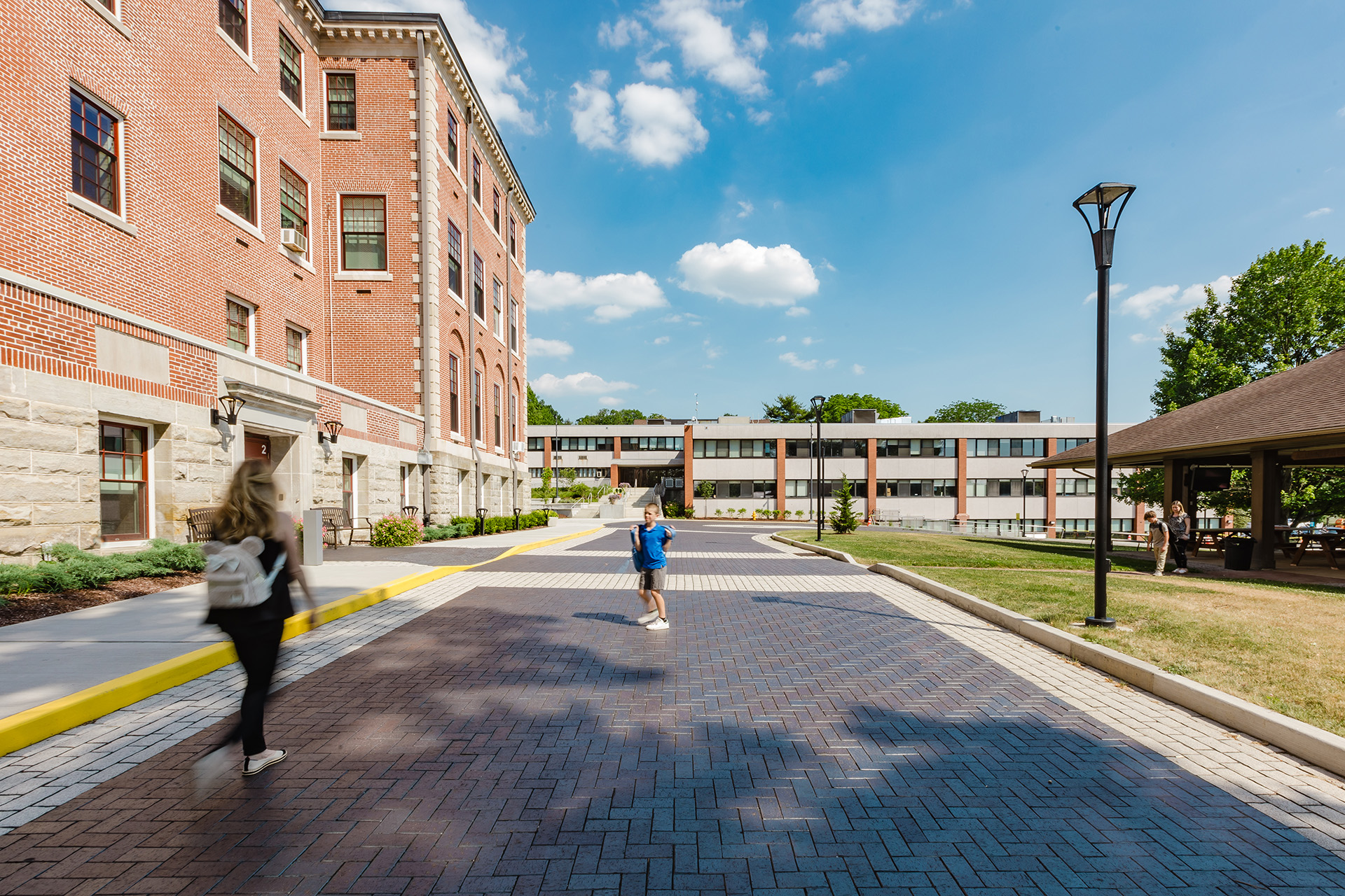 The Western Pennsylvania School for the Deaf (WPSD) selected DRAW Collective to update their campus master plan and design improvements that arose as part of the master planning process. The development of a student walk campus upgrade had been considered in previous master planning efforts but did not materialize. DRAW took a fresh look at overall campus planning and circulation to re-envision the student walk into a significant re-alignment of the campus. Originally conceived as a limited pedestrian mall-type space, DRAW led in-depth discussions with the school to better understand their daily procedures for arrival and pickup along with internal circulation on the campus.